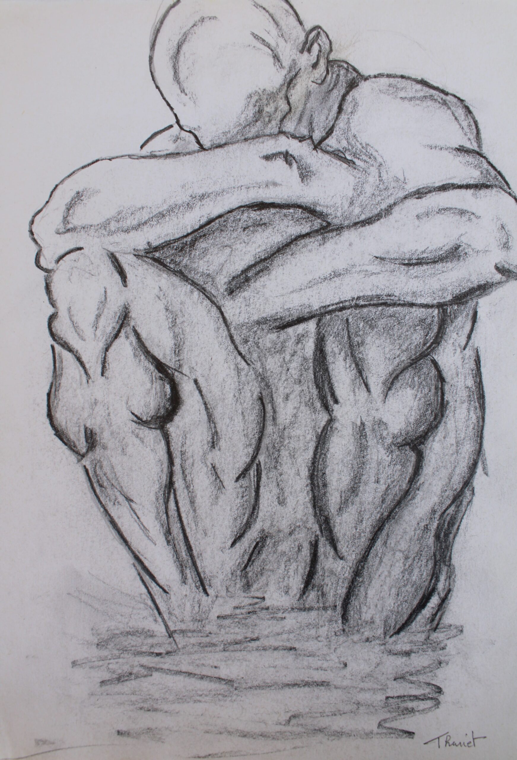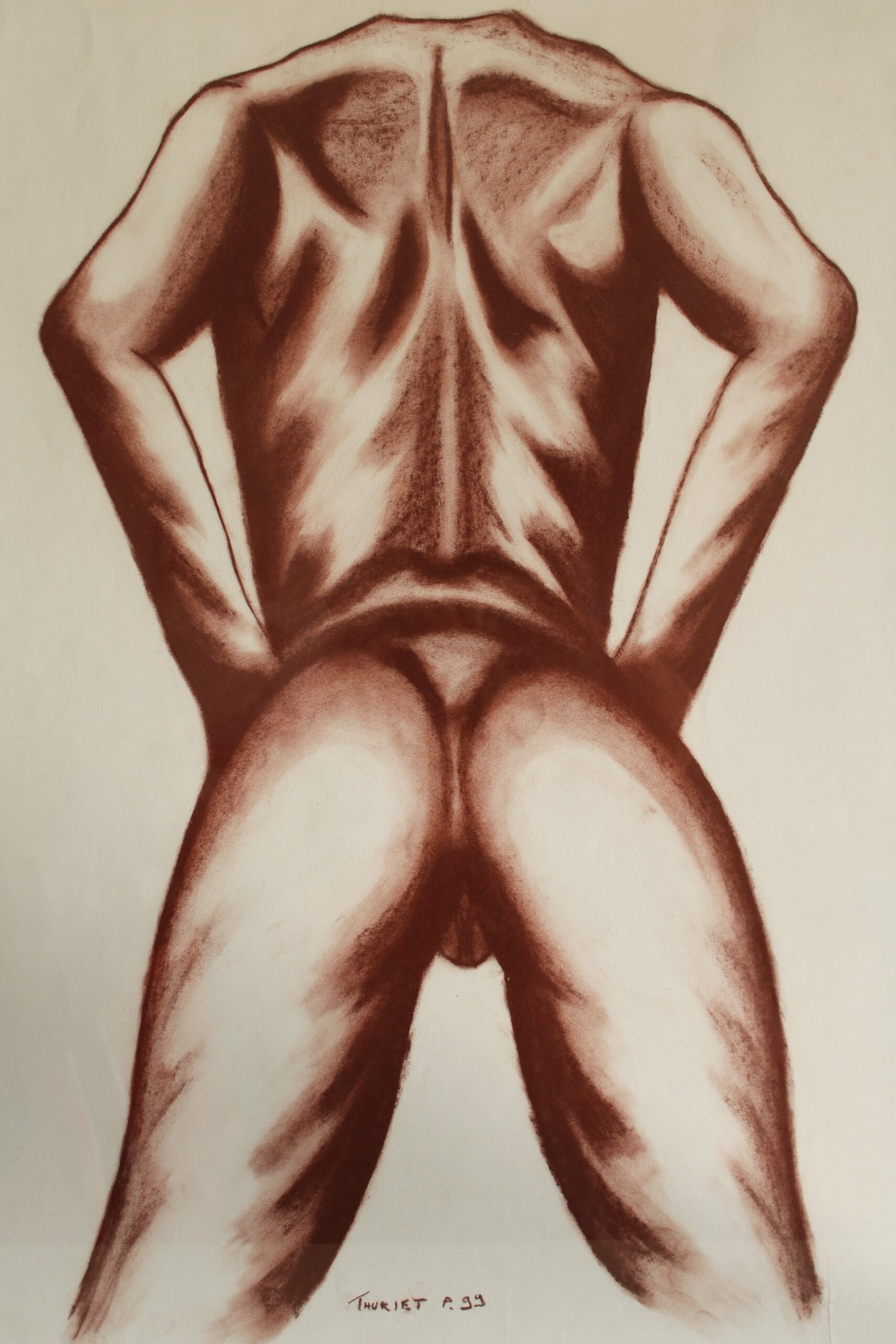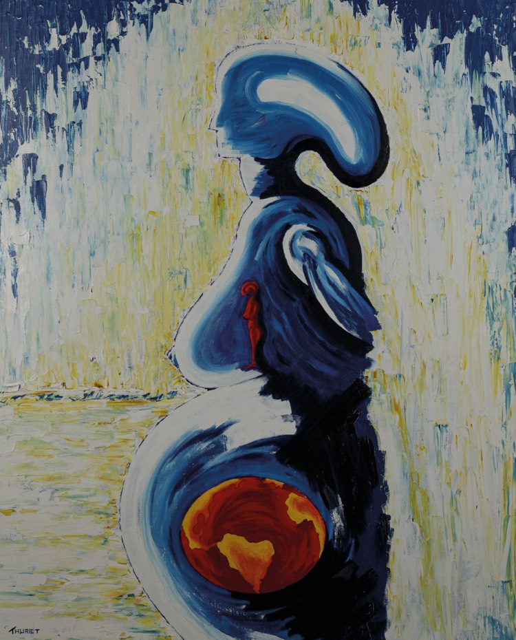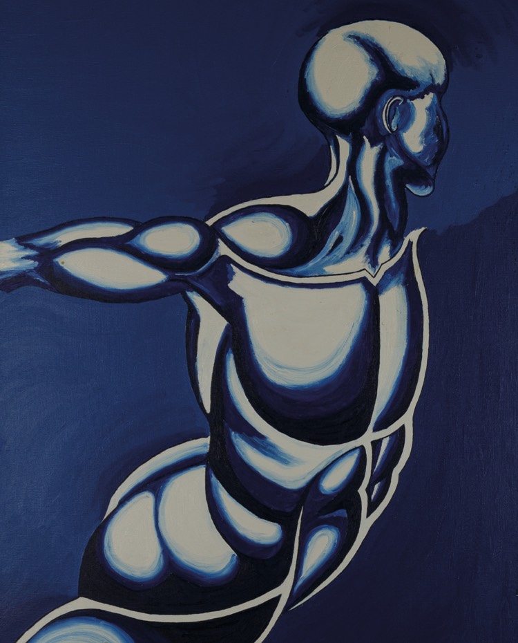 Thuriet draws on the visual languages of surrealism and abstraction to construct psychological landscapes—artworks that do not depict, but rather reveal. His figures, predominantly male, are less portraits than archetypes—vessels of vulnerability, strength, eroticism, and metamorphosis. In his hands, the male form becomes an expressive lexicon through which universal themes— transcendence, despair, desire, rebirth—are whispered and sometimes shouted. Color, particularly blue, occupies a sacred dimension in his visual vocabulary.