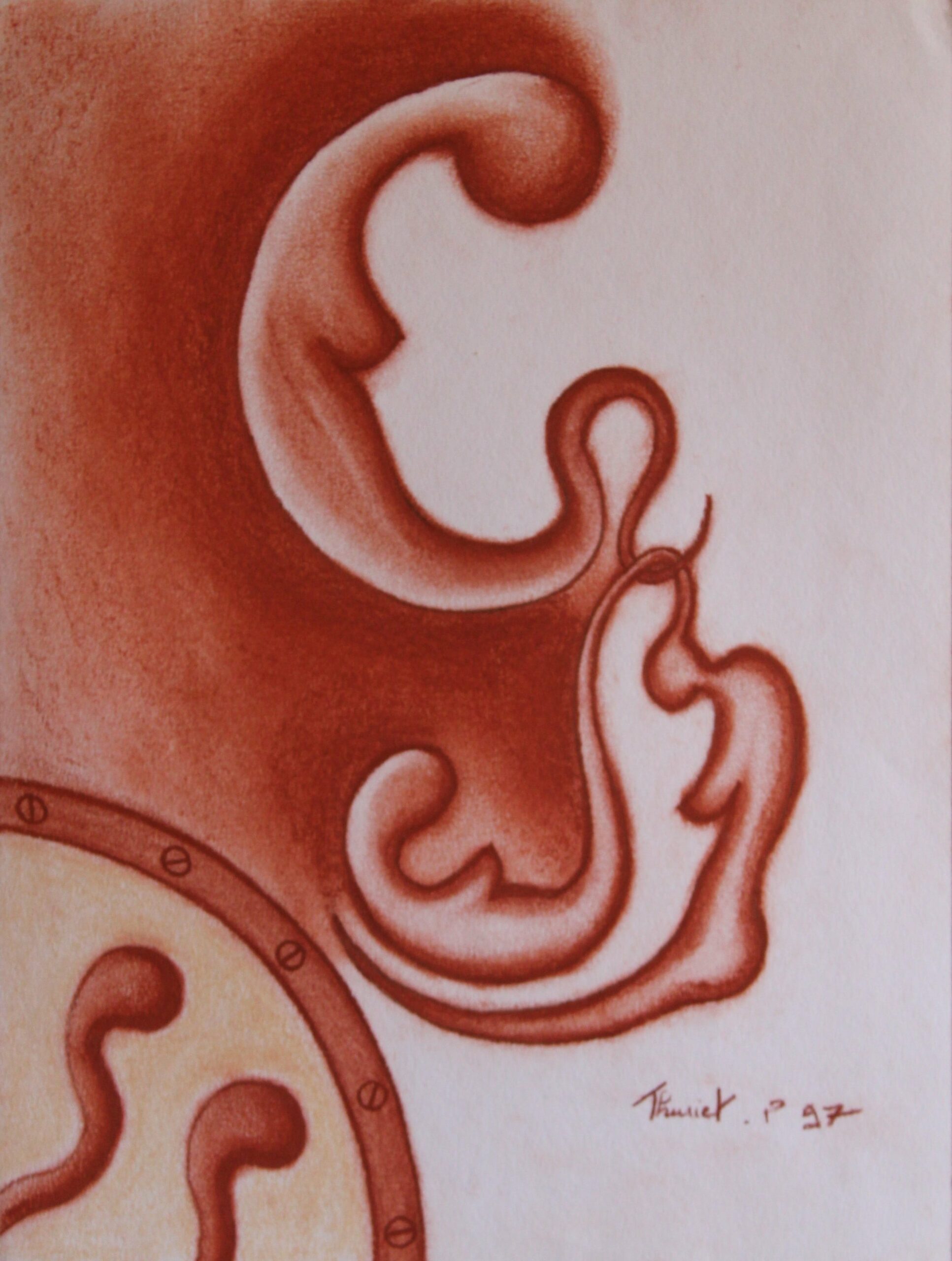A master draftsman, Philippe’s practice is rooted in the tactile immediacy of traditional media: pencil, sanguine chalk, and charcoal become his conduits into the subconscious. His compositions emerge not from the surface of the canvas, but from the liminal spaces between memory, emotion, and dream. The unconscious is not merely a theme in his work—it is the terrain he navigates with painterly precision and poetic sensitivity.